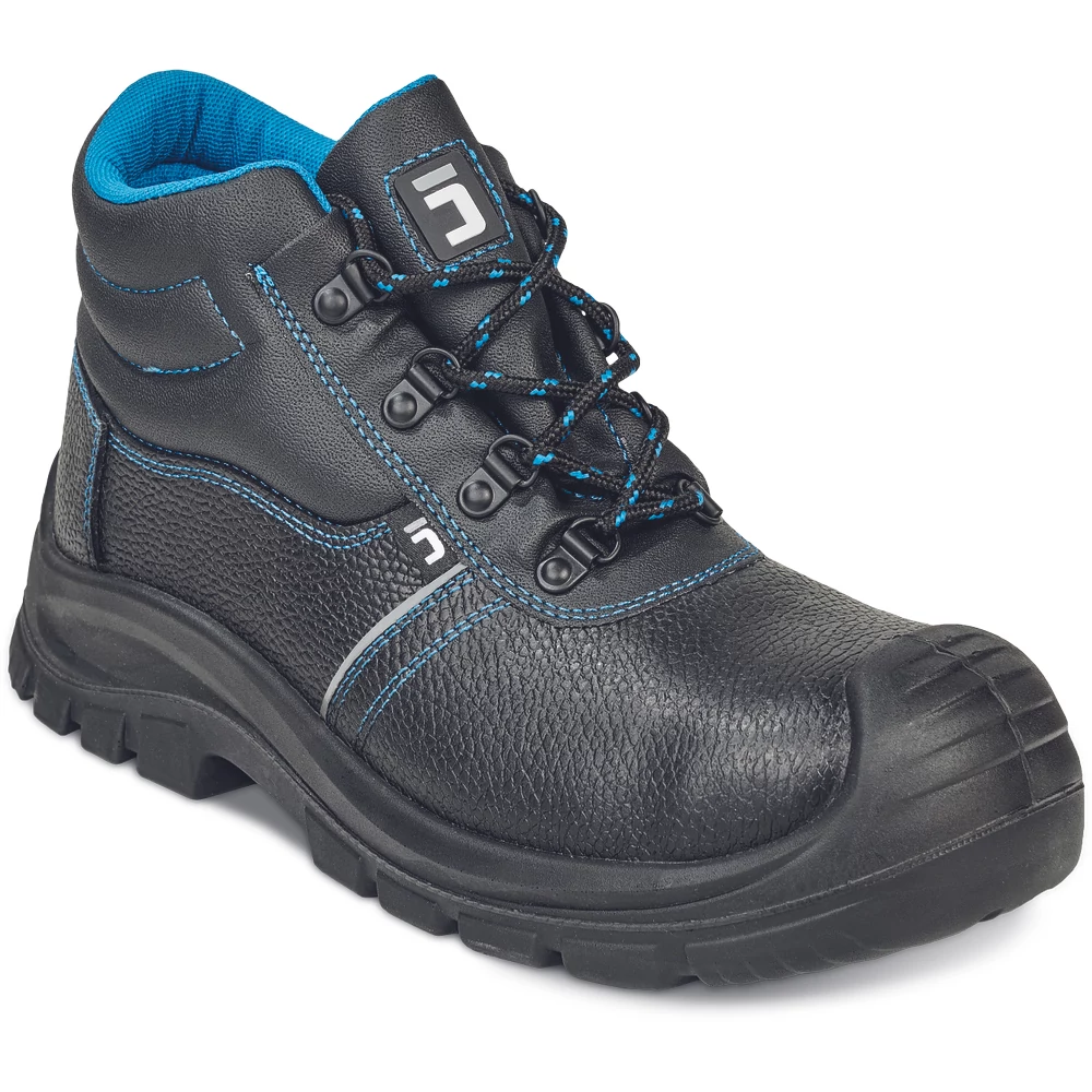 Biztonsági bakancs acél lábujjvédővel és átszúrás ellen védő köztalppal. Antisztatikus, csúszásbiztos, üzemanyagálló, nagysűrűségű PU talp, energiaelnyelő sarokkal. Vízlepergető marhabőr felsőrész.